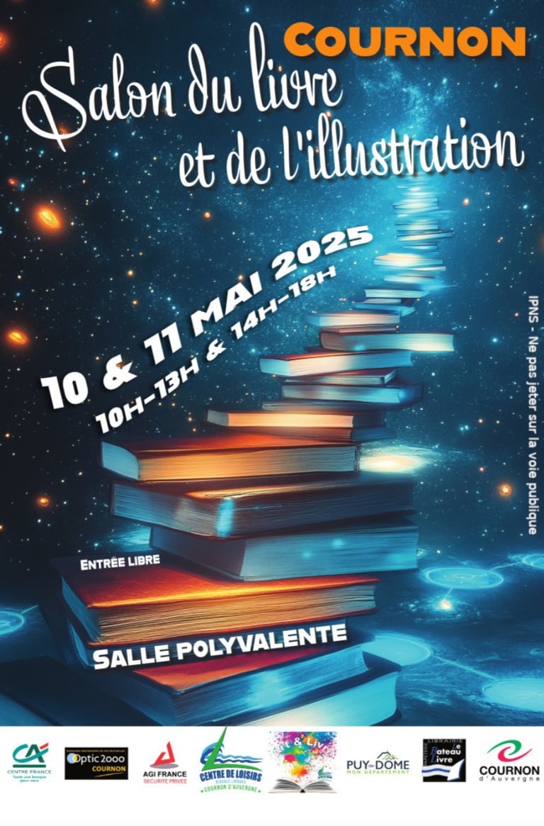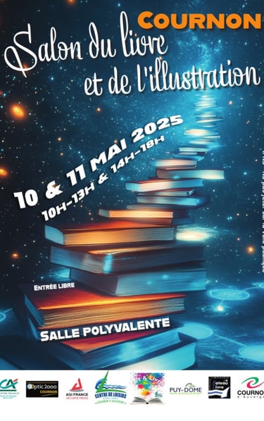 Je serai présente au Salon du Livre de Cournon d'Auvergne le samedi 10 mai de 10h00 à 18h00 pour vous faire découvrir mes romans empreints de spiritualité, d’amour et d’introspection.