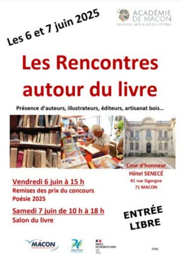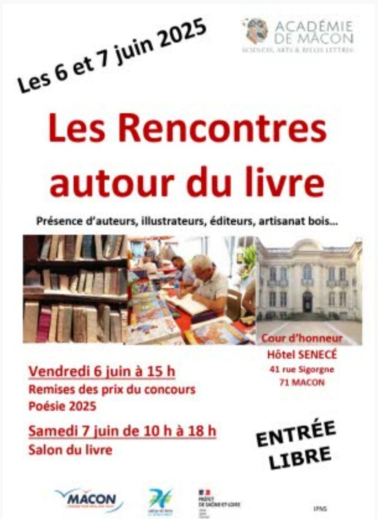 C’est avec beaucoup de joie que je participerai au Salon du Livre de Mâcon le samedi 7 juin de 10h00 à 18h00.