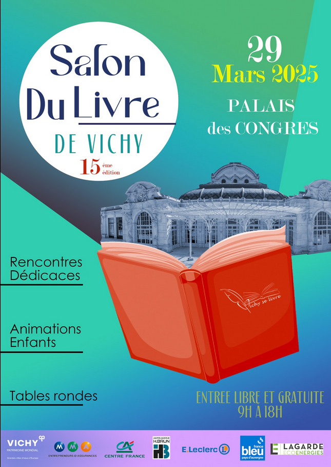 Je suis heureuse de vous annoncer ma participation pour la deuxième fois au Salon du livre de Vichy, le 29 mars 2025 au Palais des Congrès.